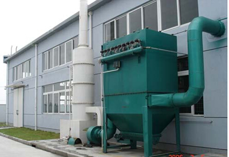 工作時(shí),含塵氣體由車間除塵設(shè)備的進(jìn)風(fēng)道進(jìn)入灰斗,粗塵粒直接落入灰斗底部,細(xì)塵粒隨氣流轉(zhuǎn)折向上進(jìn)入中、下箱體,粉塵積附在濾袋外表面,過濾后的氣體進(jìn)入上箱體至凈氣集合管-排風(fēng)道,經(jīng)排風(fēng)機(jī)排至大氣。清灰過程是先切斷該室的凈氣出口風(fēng)道,使該室的布袋處于無氣流通過的狀態(tài)(分室停風(fēng)清灰),然后開啟脈沖閥用壓縮空氣進(jìn)行脈沖噴吹清灰,切斷閥關(guān)閉時(shí)間足以保證在噴吹后從濾袋上剝離的粉塵沉降至灰斗,避免了粉塵在脫離濾袋表面后又隨氣流附集到相鄰濾袋表面的現(xiàn)象,使濾袋清灰徹底,并由可編程序控制儀對(duì)排氣閥、脈沖閥及卸灰閥等進(jìn)行全自動(dòng)控制,由此使積附在濾袋上的粉塵周期地脈沖噴吹清灰,使凈化氣體正常通過,保證除塵系統(tǒng)運(yùn)行。當(dāng)含塵氣體由進(jìn)風(fēng)口進(jìn)入,經(jīng)過灰斗時(shí),氣體中部分大顆粒粉塵受慣性力和重力作用被分離出來,直接落入灰斗底部。含塵氣體通過灰斗后進(jìn)入中箱體的濾袋過濾區(qū),氣體穿過濾袋,粉塵被阻留在濾袋外表面,凈化后的氣體經(jīng)濾袋口進(jìn)入上箱體后,再由出風(fēng)口排出。另外,隨著時(shí)間的增加而積附在濾袋上的粉塵越來越多,增加濾袋阻力,致使處理風(fēng)量逐漸減少,為正常工作,一定要控制阻力在一定范圍內(nèi)(140--170毫米水柱)。